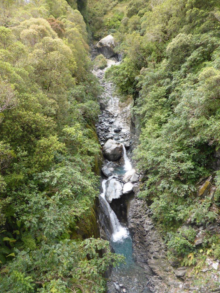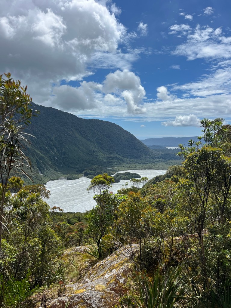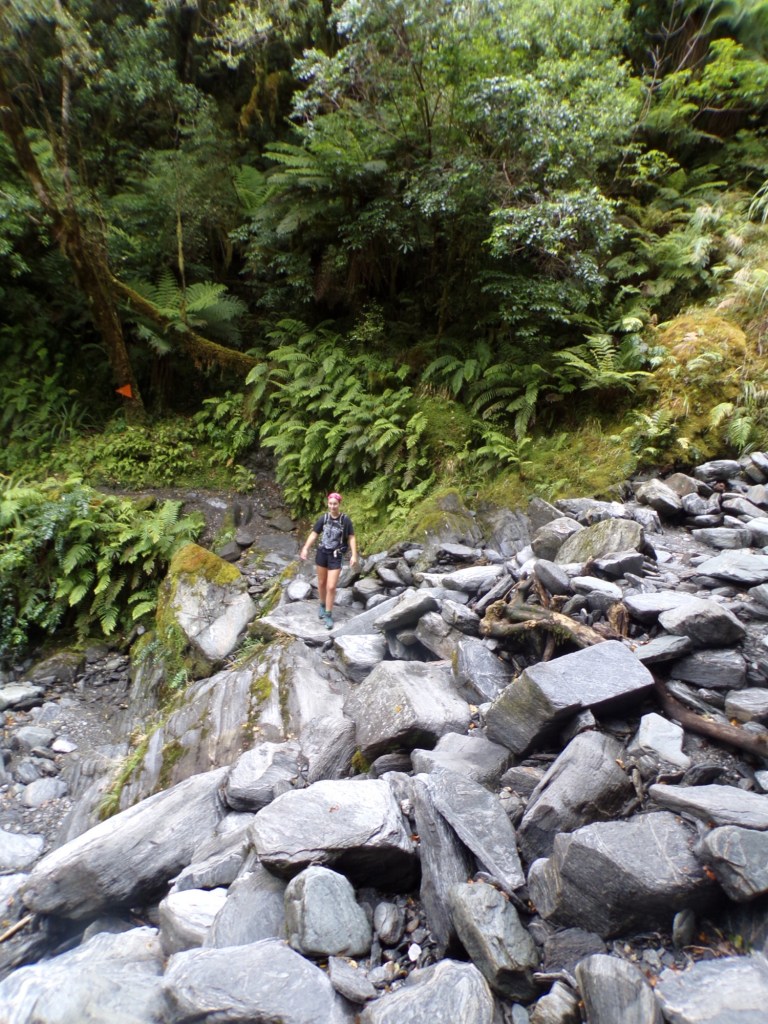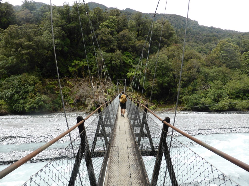 At the very end of the second kilometre you reach the Douglas bridge which crosses over the Waiho river. This is the official start of the Robert Point track and where the easy part of the walk ends I’m afraid! This kilometer took us 20 minutes, including breaks to stop and admire the views of course.