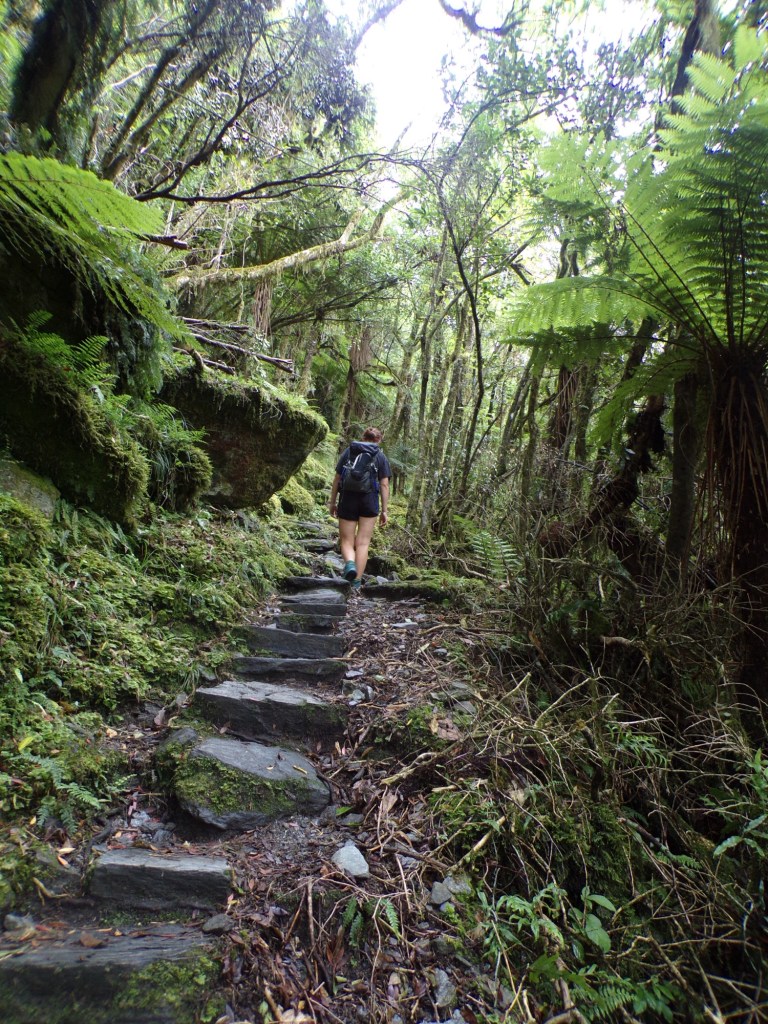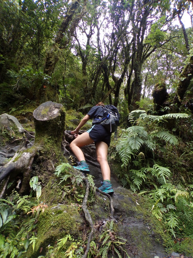We met some people at this point who warned us how much harder the hike was about to get, and sadly they were right. The pictures below are from the rest of the third kilometre, where at certain points it was hard to follow the track because we couldn’t believe the arrows were pointing the correct way! There was lots of climbing over rocks, up steps and over tree roots, which made this kilometre take us 24 minutes in total.