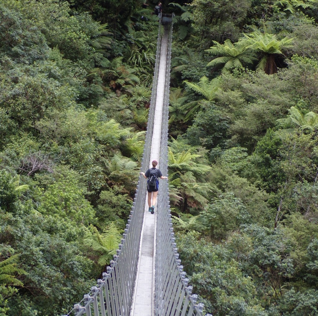 The Roberts Point track in Franz Josef is a 12.3km walk where you return along the same track. The walk begins in the Franz Josef car park, which is a 10 minute walk outside of Franz Josef. The hike takes you across multiple swing bridges over rivers, through lush forest and ends at a lookout with a stunning view of the glacier.