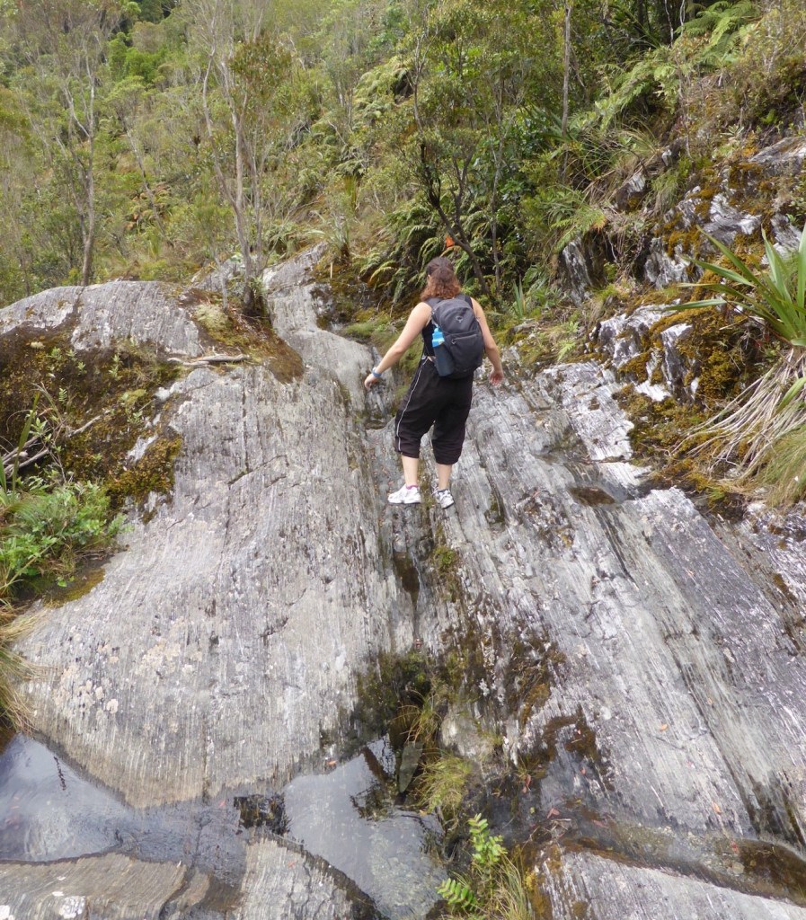 At the end of this kilometre there are multiple stream crossings which are very slippery, so it is worth taking it slow and watching your step.